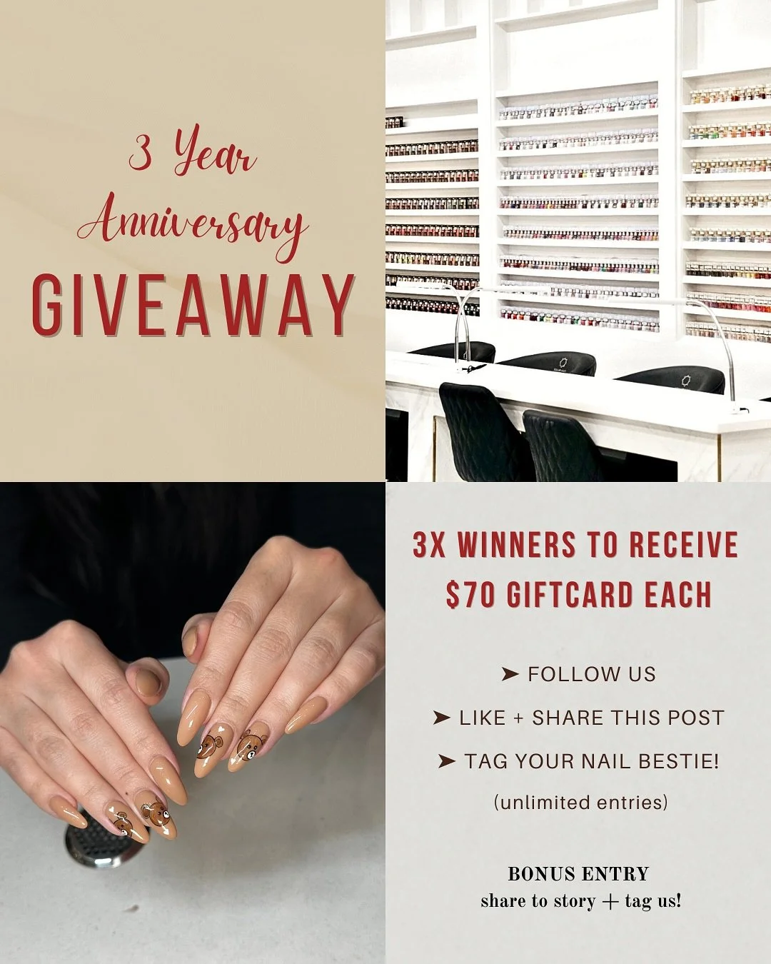 Happy to have you here! Weβre modern and casual. We offer nail and spa services including manicures, pedicures, most popular nail enhancements, and waxing. Our goal is to be your go-to nail salon for all your nail care routine. To elevate your nail experience, weβve added a complimentary drink menu including wines + cocktails. So come have a drink and get pampered!